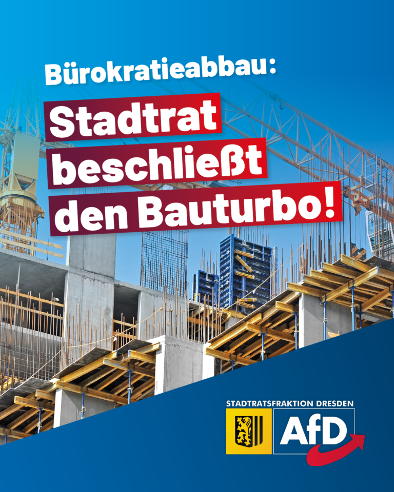 In seiner heutigen Sitzung hat der Stadtrat die Möglichkeit geschaffen, dass die auf Bundesebene geschaffenen Gesetzesgrundlagen für einen „Bauturbo“ auch in Dresden angewendet werden können.