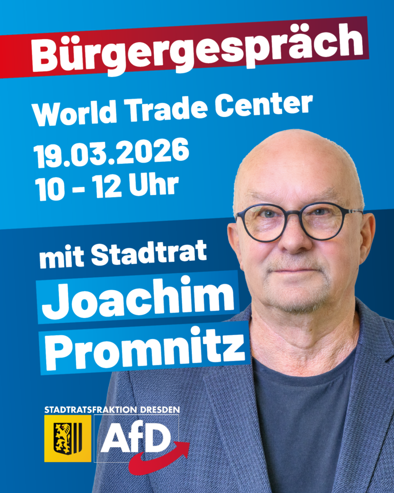 Infostand mit Stadtrat Joachim Promnitz 📍 vor dem World Trade Center 📅 19.03.2026 🕙 10 – 12 Uhr