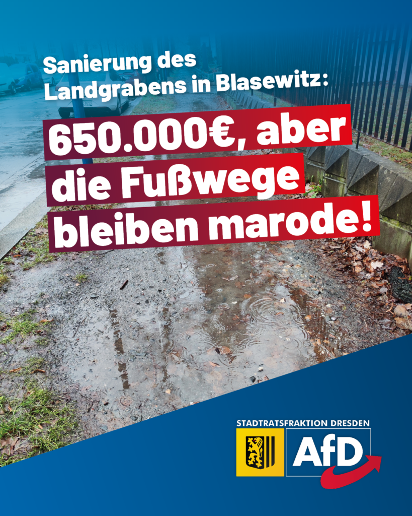 „Jeder investierte Euro in Striesen und Blasewitz ist ein guter Euro – aber wie überall in Dresden werden völlig falsche Prioritäten gesetzt. Die Stadt beweist, dass sie Fördermittel mit 95 % Quote beantragen kann, wenn sie will – beim Landgraben klappt das hervorragend. Für die wirklich wichtigen Themen wie sichere, sanierte Fußwege fehlt jedoch der gleiche Ehrgeiz. Warum eigentlich? Müsste OB Hilbert nicht mit derselben Energie auch für funktionierende Infrastruktur kämpfen? Die Bürger haben ein Recht auf beides – aber zuerst auf intakte Wege!“